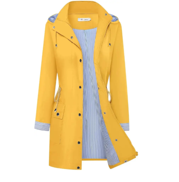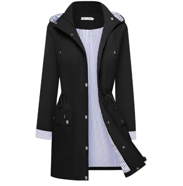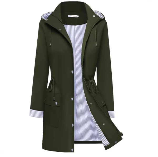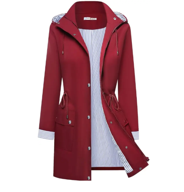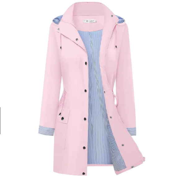 Our women’s trench coats are designed to look elegant and stylish, featuring a detachable cap, fashionable design, and a striped pattern, making it perfect for a casual fashion look.